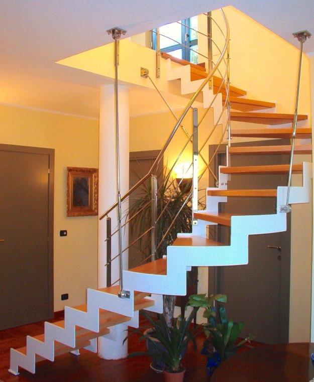 Realizzazione di scale autoportanti artigianali con struttura in metallo ed inserti in legno. Ogni realizzazione è su misura e totalmente personalizzabile nelle geometrie e nelle finiture, seguendo la lavorazione con la massima cura del dettaglio, a partire dalla precisione centesimale del taglio a laser, che utilizziamo per queste realizzazioni.